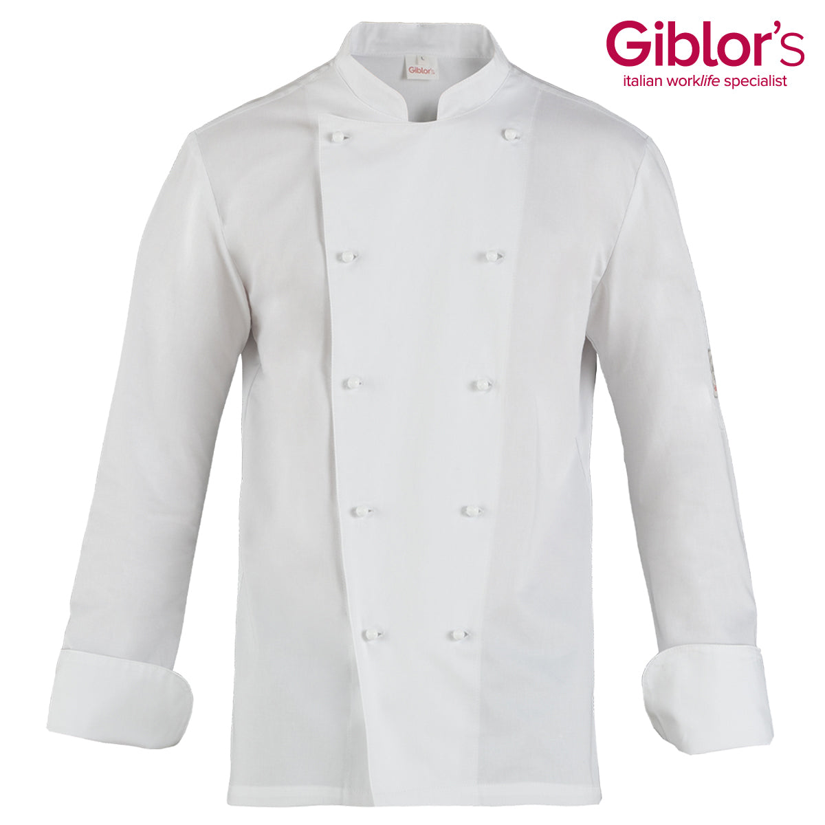 La giacca da cuoco Adriano combina eleganza e praticità, con abbottonatura doppiopetto, collo e polsini arrotondati e un taschino portapenne posizionato sulla manica sinistra. Il taglio Slim Fit valorizza la linea, mentre i bottoni estraibili donano un tocco distintivo al design frontale.
